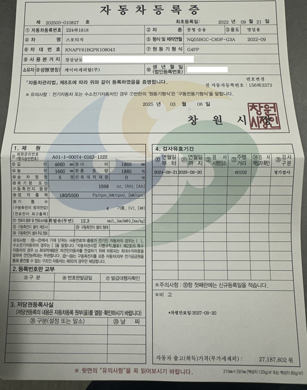 KB캐피탈 법인장기렌트로 기아 스포티지 차량을