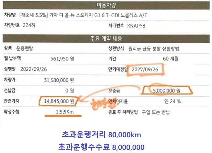 보증금 500만원이 걸려있다고 하더라도 중도해지수수료 + 초과운행수수료를