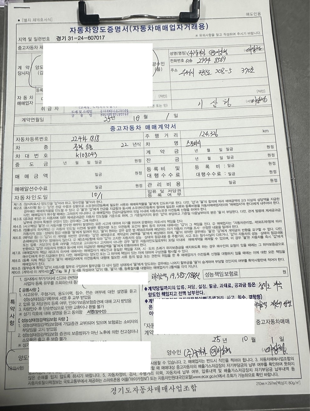차량을 운행하지 않게되어서 정리를 하기 위해서