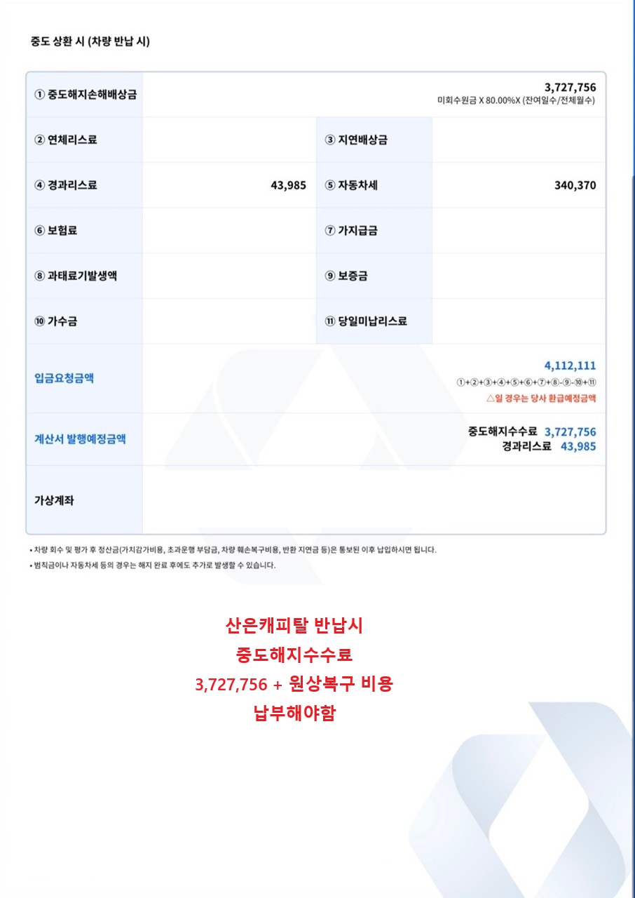 현재 산은캐피탈리스 반납시에는 보증금이 없고